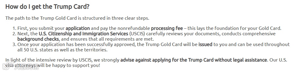 申请特朗普“黄金卡”需经过三个明确的步骤。