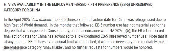 旧政表B仍保留在2016年10月1日,且暂未开放。投资人无法递交485,但可期待下一个财年2025年10月的签证公告,通常会开放。