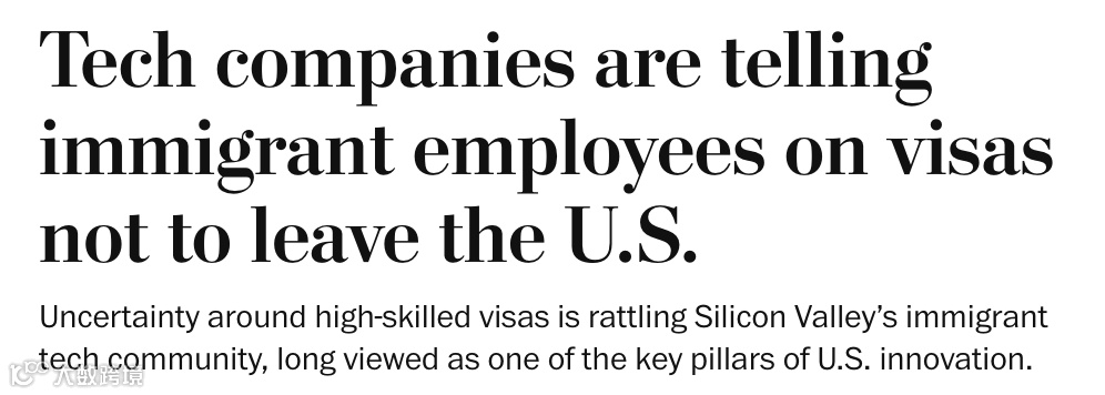 事实上,当下不少H-1B签证持有者,正深陷前所未有的身份焦虑之中。据《华盛顿邮报》4 月3日消息,多家美国科技公司纷纷向持有H-1B签证的员工发出提醒:“近期非必要不要出境。”原因简单而又残酷——一旦出境,可能就再也回不来了。