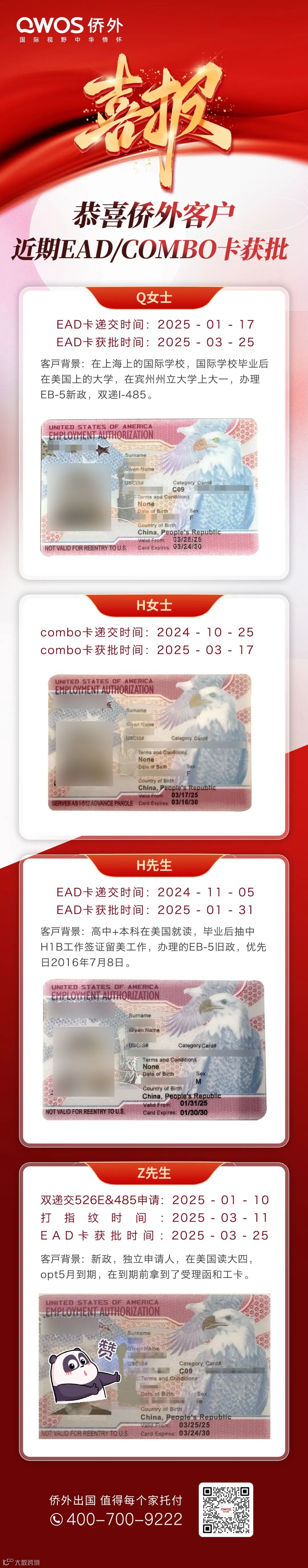 侨外移民服务的众多留学生客户,甚至在短短2-3个月内就收到了5年期工卡,1年内就获得了条件绿卡,效率之高令人瞩目。
