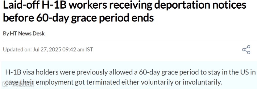 这些信号,都让H-1B签证持有者敲响警钟——对于他们来说,一旦失业,在宽限期内迅速采取应对措施刻不容缓,否则极有可能因延误处理而陷入被遣返的艰难处境。