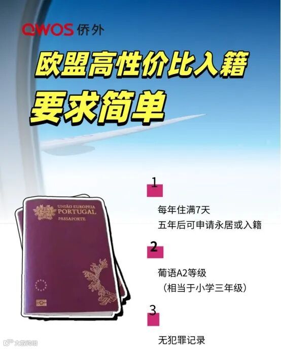 目前,只需捐款20万欧即可获得葡萄牙黄金居留卡,每两年住满14天,累计5年即可申请葡萄牙护照。目前,葡萄牙护照在全球护照指数中排名第五,持有者可以免签前往189个目的地,居留卡免签29个申根国家。