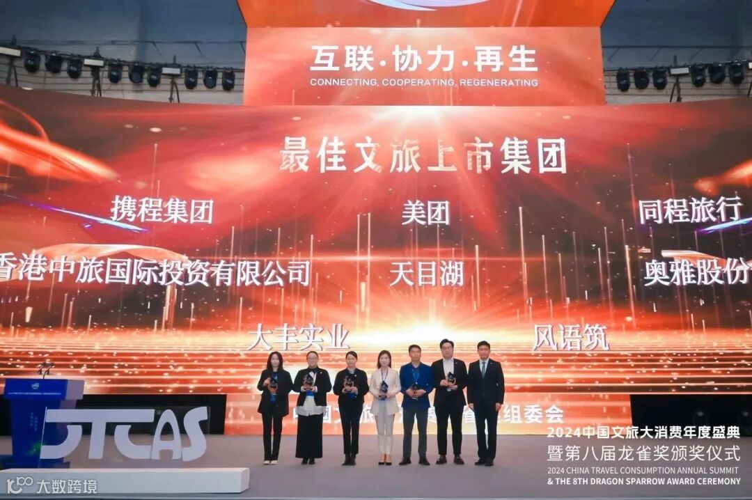 11月7-9日, 2024中国文旅大消费年度盛典暨第八届龙雀奖颁奖仪式在横店影视城举办,中旅国际获“年度最佳文旅上市集团”奖,旗下泸沽湖岚岳酒店获“年度卓越度假酒店综合体”奖、锦绣中华华服主题街区——锦绣西市获“年度沉浸式商业文旅综合体”奖。