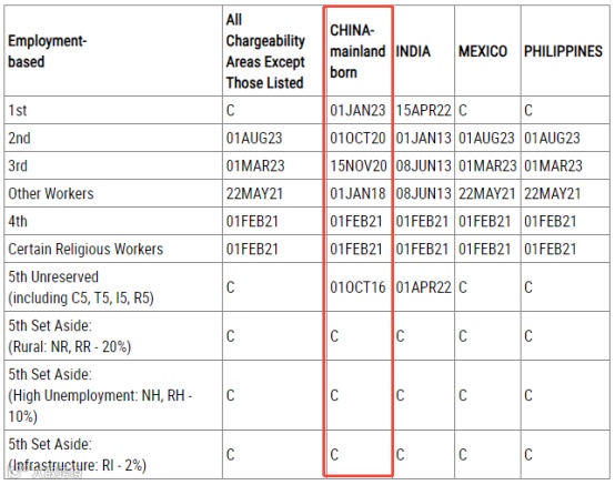 根据USCIS官网显示,2月份不开放职业类移民的表B,所以本月职业类移民排期以表A为准。