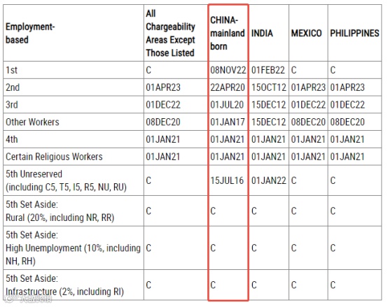 值得一提的是,新法下的EB-5预留类别,在首次排期预警的压力下安全挺过本月,继续以“无排期”的绝对优势碾压其他签证类别。
