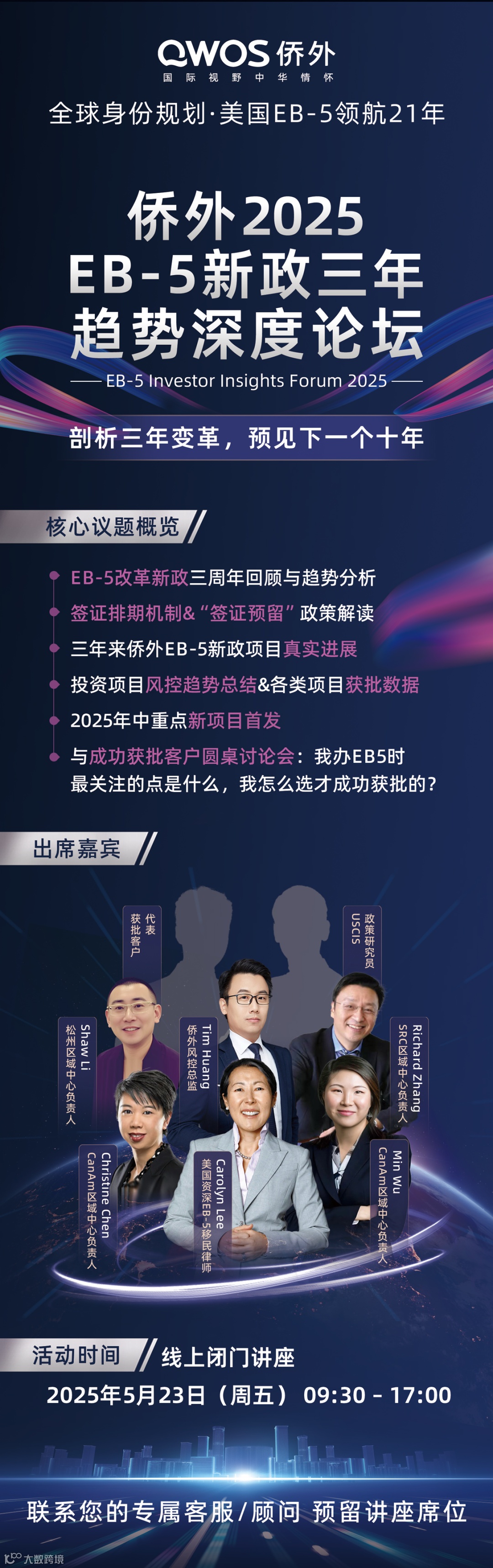 活动将汇聚行业权威专家、项目方代表及成功获批客户,通过政策解读、数据剖析、案例分享与圆桌讨论,为大家提供EB-5的趋势洞察与实操指导。更多活动环节: