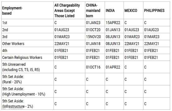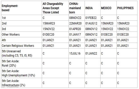 对于中国大陆申请人而言,EB-1类别已经在11月份和12月份连续两个月进入了停滞状态。具体来看,表A的排期维持于2022年11月8日不变,而表B也持续停留在2023年1月1日,未见任何进展。