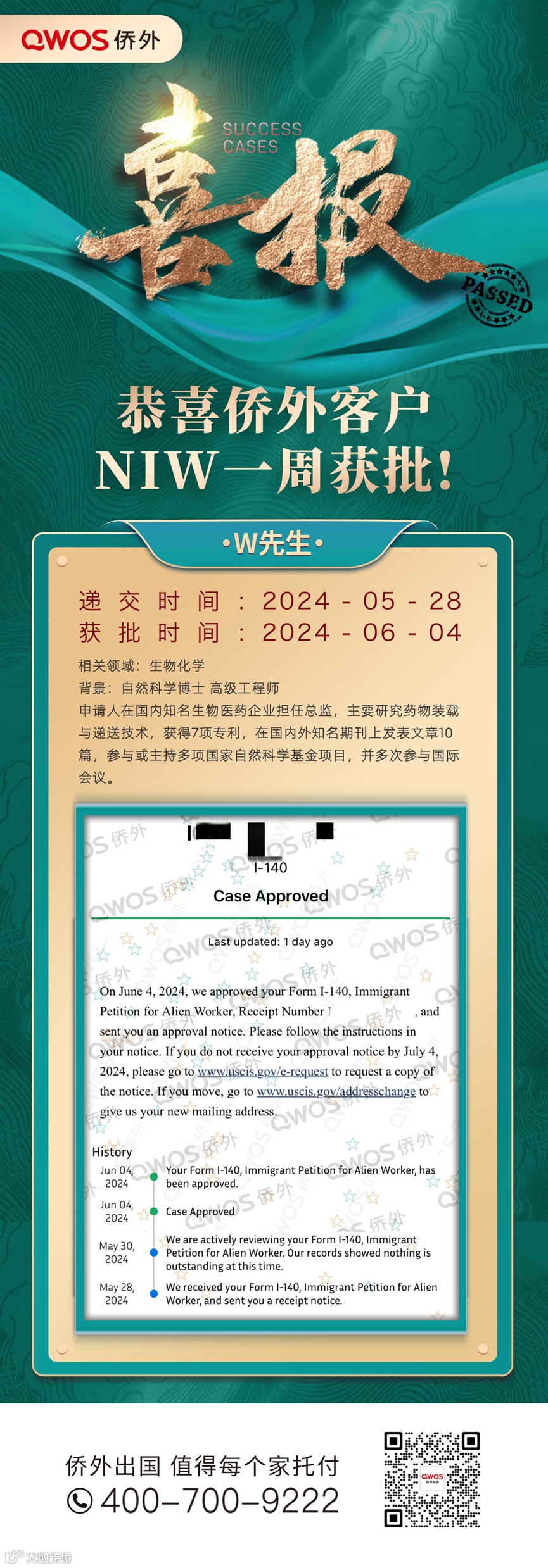 也正因如此,NIW的申请人往往能够较快获得批准。近日,小侨就有两位客户成功获批NIW,最快的用时仅一周,堪称“光速”。
