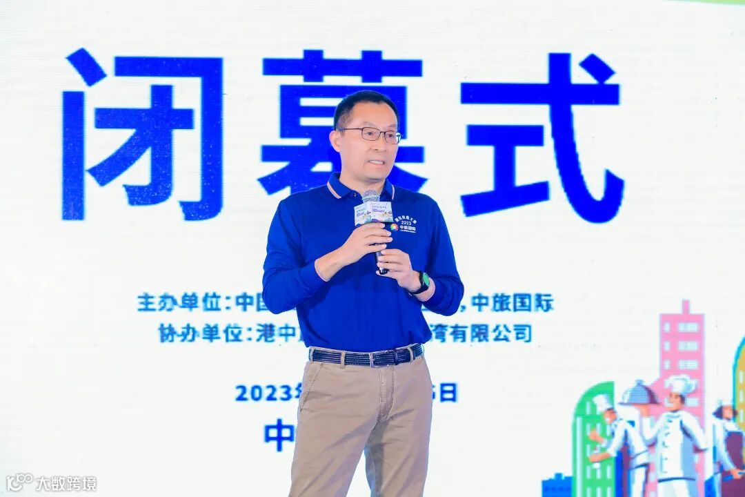 中旅国际总工程师、工会主席高博闭幕式致辞,他对此次比赛的圆满举办表示肯定和祝贺,他表示本次服务技能大赛秉持“百年中旅 传承有我”的精神,以“以赛促学 提质强技”为主题,致力于推动中国旅游集团管理服务的持续提升,也是中旅国际全面开展服务质量提升、打造核心竞争力的一项重要举措