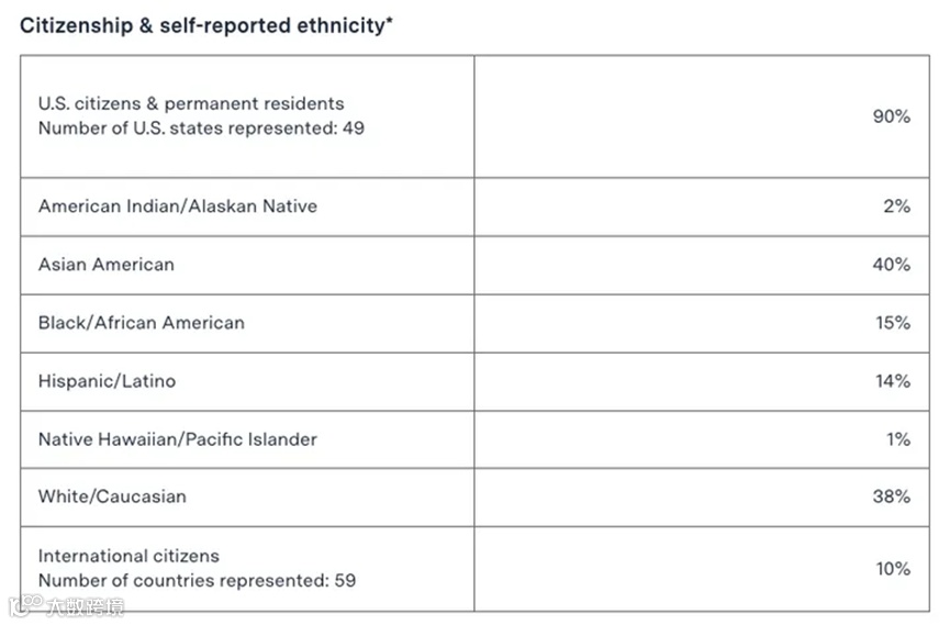 以上面的麻省理工学院官方数据为例,MIT 2023年被录取的本科新生当中,90%为美国公民或者拥有美国绿卡。来自59个国家的海外学生占录取总人数的10%。