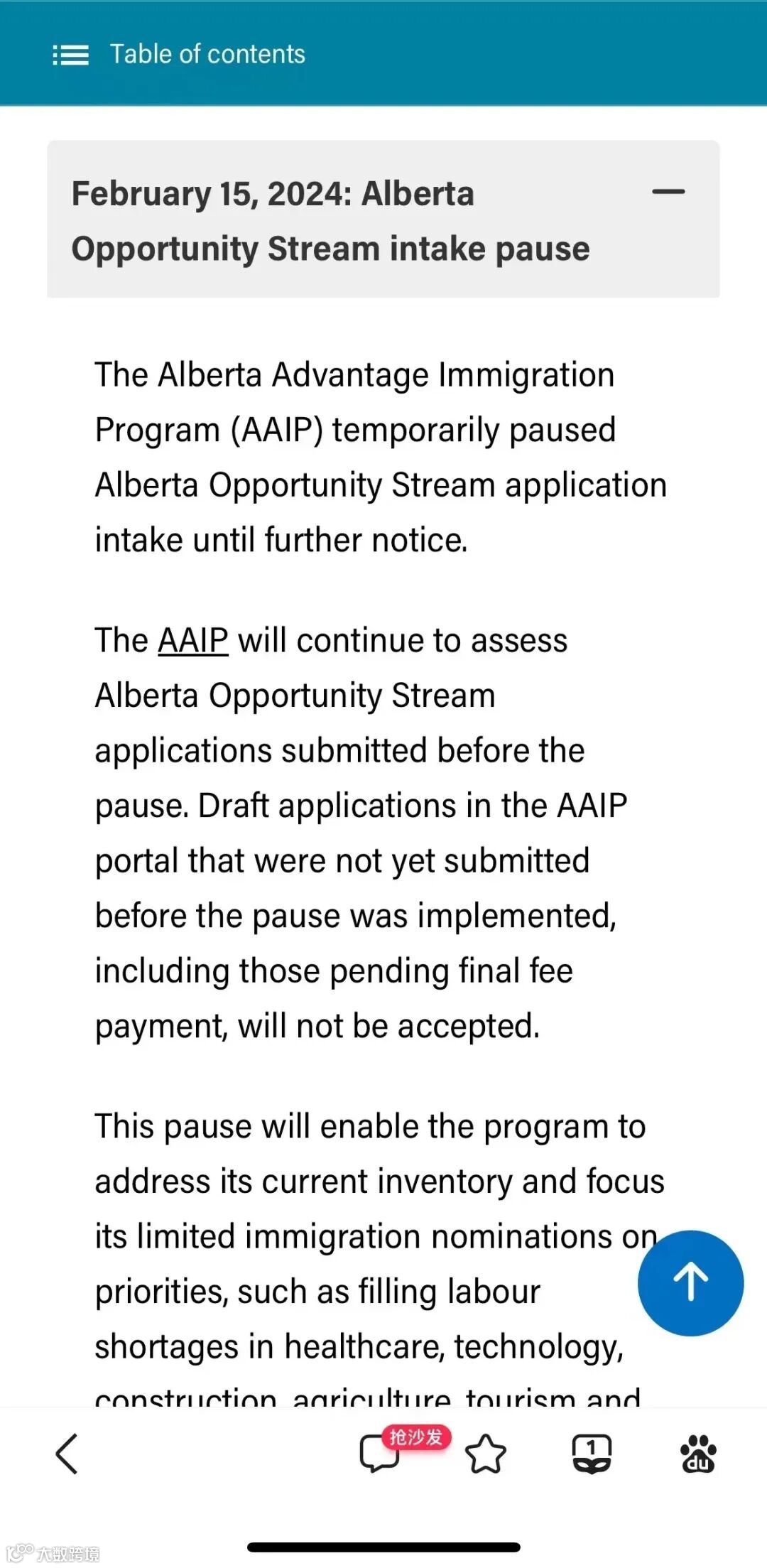 当地时间2月15日,阿省移民局官宣阿省提名(AAIP)暂停受理机遇类别(AOS)申请,立即实施,直至另行通知。