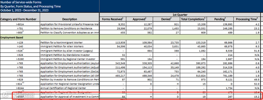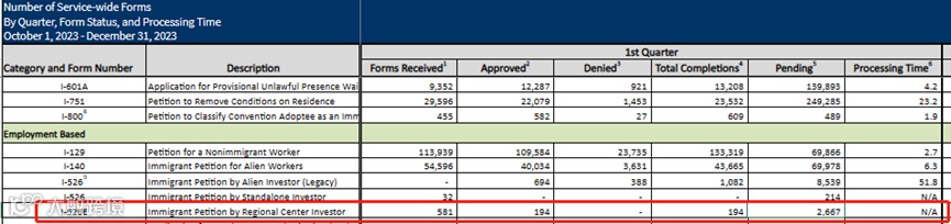 (1)2024财年第一季度I-526E收件和审批最新数据: