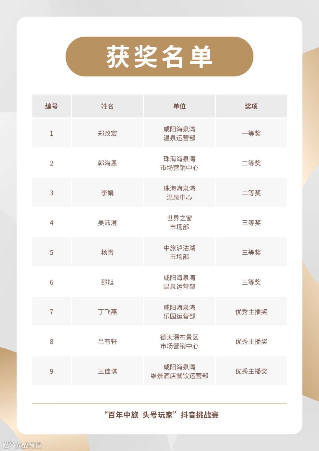 通过本次直播大赛,我们实现了“以赛代练”的目的,九位选手也从海选一路挑战和突破,最终登上抖音挑战赛领奖席,成为了中旅国际第一批旅游达人、旅游体验师。