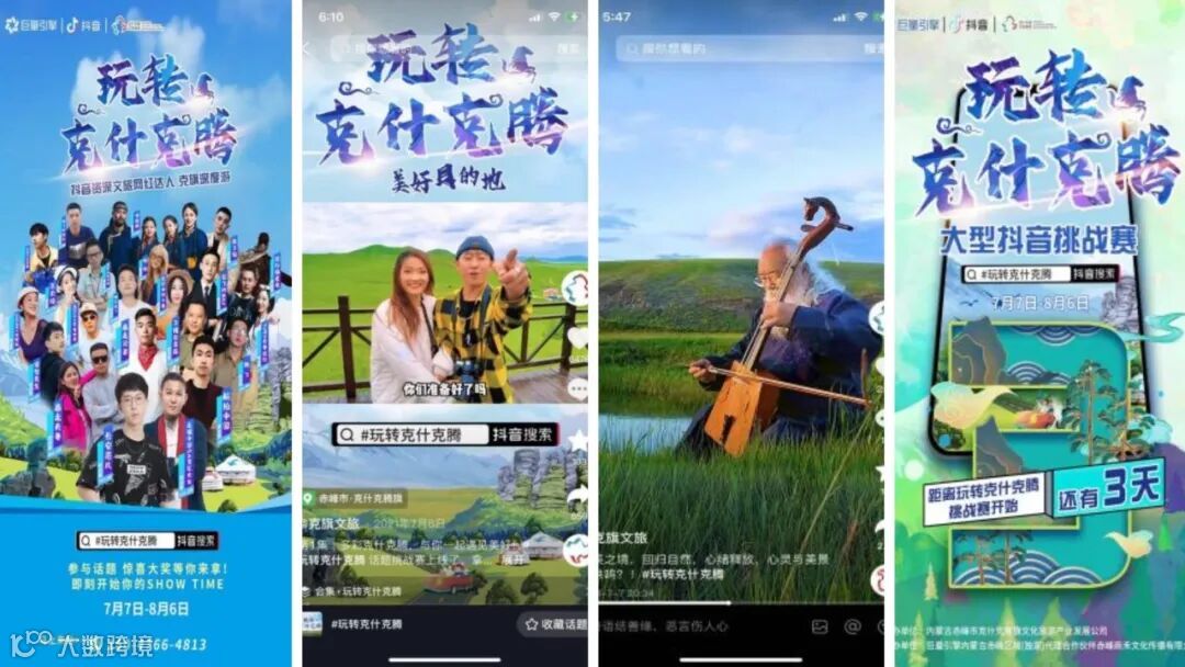 在深大智能创新团队的全案策划及运营支持下,克什克腾旗逐步搭建新媒体渠道营销能力,抖音官方账号开展了抖音短视频话题挑战赛、短视频内容带货等创新活动,紧抓新媒体流量入口,带动线上粉丝及线下游客的良性增长。截至今年暑期,“克旗文旅”抖音官方账号粉丝量已突破10万。“玩转克什克腾”抖音短视频话题曝光量超过3.2亿。