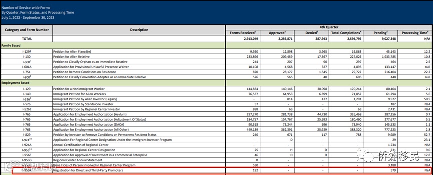 二、2023财年第四季度I-956F(新政项目预审)申请数据: