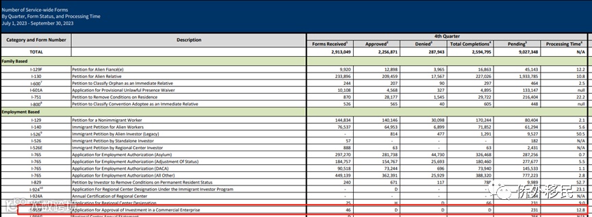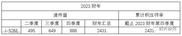 一、2023财年第四季度I-526E收件和审批最新数据: