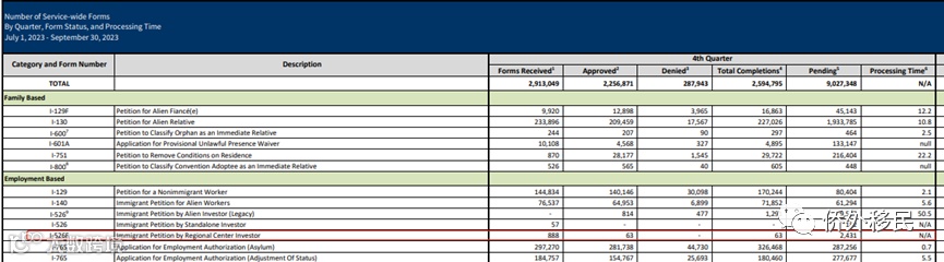 近日,美国移民局公布了2023财年第四季度(2023年7月1日至9月30日)EB-5案件递件和审批的最新数据。让我们一起来看看: