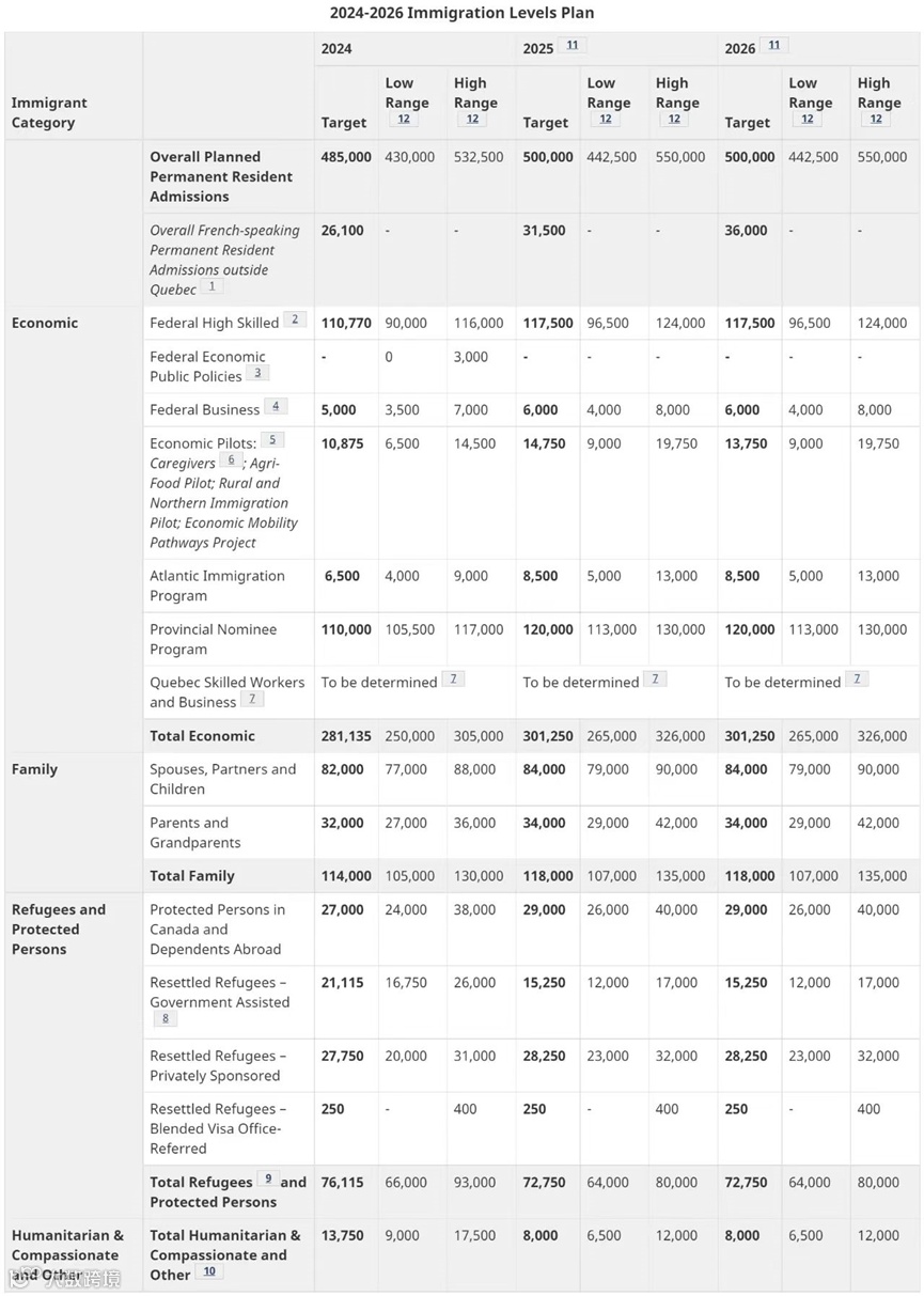而就在当地时间11月1日,加拿大移民局(IRCC)发布了2024年-2026年未来三年的移民计划。IRCC正式官宣,到2024年,加拿大的目标是接纳48.5万名新移民,而在2025年和2026年,加拿大每年将迎来50万新移民。