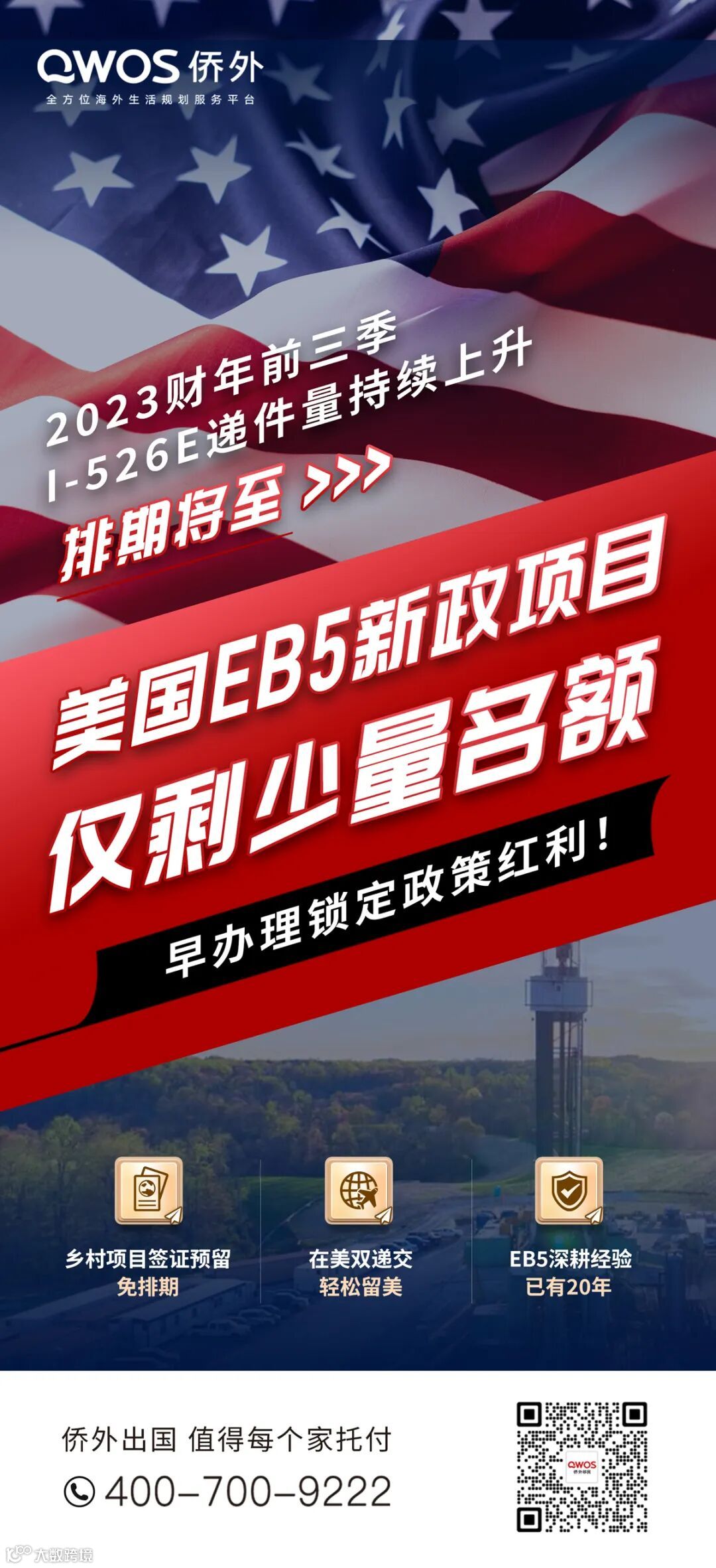 目前,侨外优质美国EB-5新法乡村项目仅剩最后几席名额,想上车的朋友请尽快锁定了!如果您想了解更多相关信息,也欢迎扫描下方二维码咨询侨外美国移民专家↓↓↓我们将根据您的具体情况,为您量身定制适合的方案!