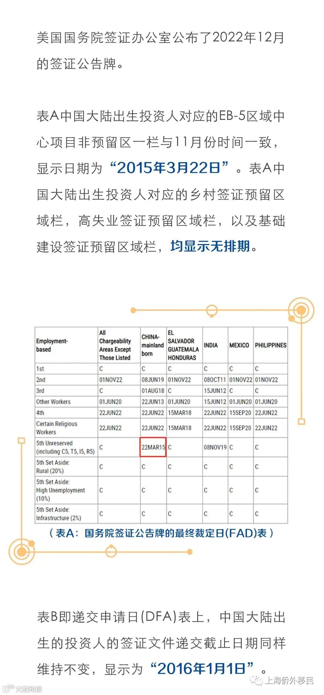 导读:美国国务院签证办公室公布了2022年12月的签证公告牌。