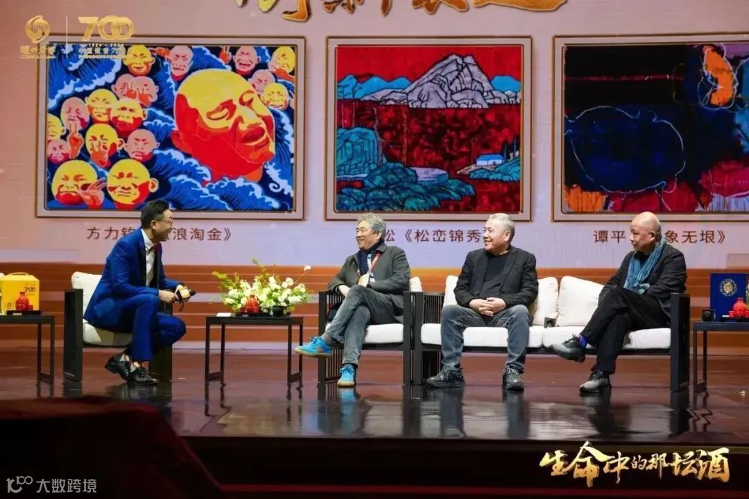 ▲艺术家方力钧(右一)、薛松(右二)、谭平(左二)参加“生命中的那坛酒”大型文化访谈