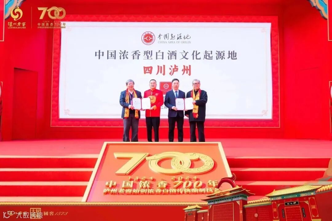 ▲泸州市及泸州老窖获得中国浓香型白酒文化起源地证书