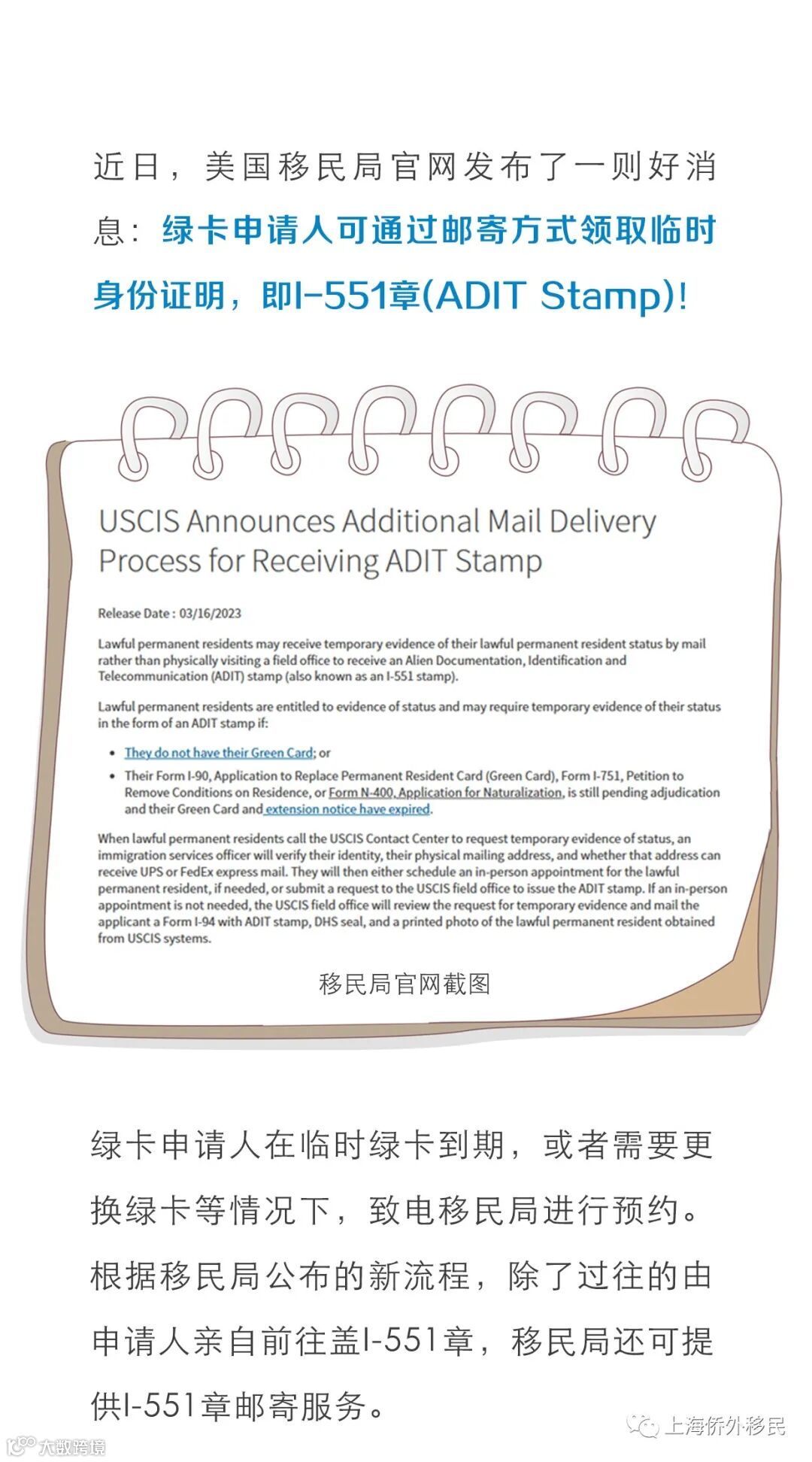 导读:好消息!美国移民局发布I-551章邮寄新程序
