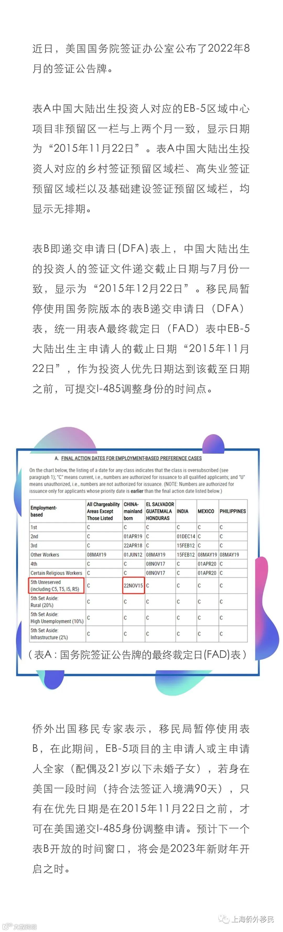 导读:近日,美国国务院签证办公室公布了2022年8月的签证公告牌。