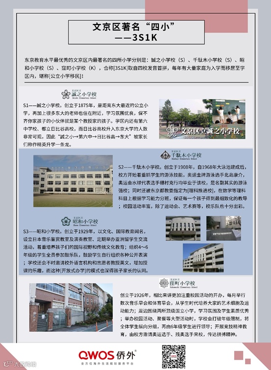 在日本,孩子会根据您所居住的区域推荐分配到附近的公立小学、初中就读。学校与住宅二者不可或缺。侨外也将陆续推出学校周边优质的房产推荐的配套服务。