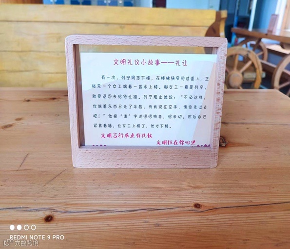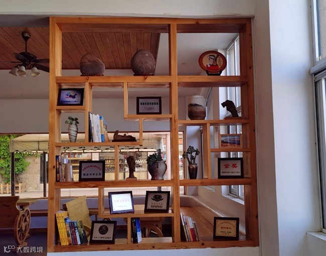 为缓解游客旅游疲劳,放松心情,在游客服务中心增设花瓶摆件,陈列书籍,还在休闲桌放置小笑话摆件,美化观感的同时为游客提供了一种别致的休闲方式。