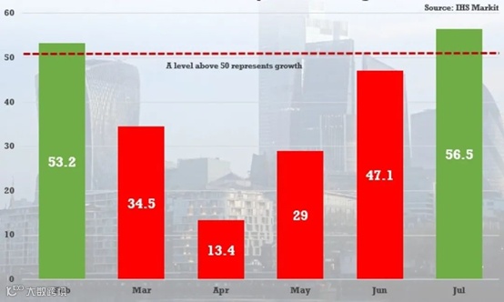 市场调查机构埃信华迈公司和英国采购与供应特许协会最近发布的数据显示,7月英国综合采购经理人指数(PMI)反弹至57,高于6月的47.7,超过50的“荣枯线”。英国服务业PMI从6月的47.1大幅上升至56.5,创2015年7月以来新高。制造业PMI反弹至53.3,高于6月的50.1,复苏势头良好。从这些亮眼的数据,让人们对英国经济的第三季度表现充满了信心。
