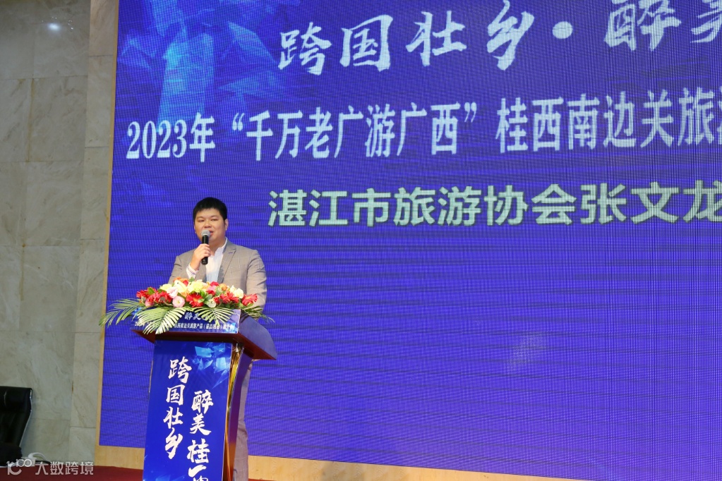 本次活动由广西旅游协会、湛江市旅游协会、中旅国际广西区域公司三方共同主办,并联合广西桂西南大德天边关旅游营销联盟21家景区和广东简易假期旅行社共同开展,参加的旅游同行过百人。推介会现场,由中旅德天跨国瀑布景区代表桂西南大德天边关旅游营销联盟发布《桂西南大德天边关旅游营销联盟景区2023年专列/包列/包机奖励政策》、《广西五大旅游精品线路》及德天和花山景区新玩法等。同时,中盛公司、巴马寿乡公司、龙冈龙宫仙境、广西龙虎山、崇左江州、龙州等景区代表分别就2023年景区新产品和项目进行了推介,诸多渠道商和景区现场集中签署了2023年合作送团协议书。
