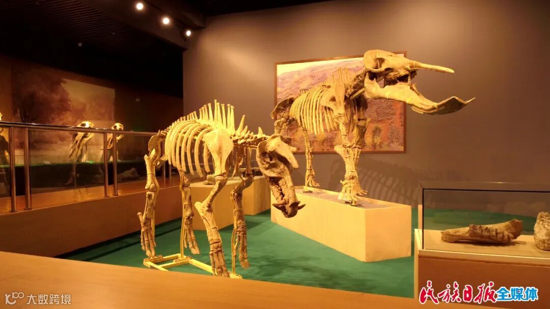 该馆在展品表述上运用情景再现手法营造生态景观,通过空间、色彩、造型等设计要素,科学提炼、自然还原、艺术概括、高仿真制作,在有限空间内营造了富有意境的生态场景。四大古动物群典型的生态景观, 将展品的单一展示改变为群组式展示,突出仿真场景,以数量庞大的化石,形成错落有致的节奏和韵律,呈现了古哺乳动物鲜活而自由的生活场景,大家可以从丰富的化石穿越时空,走进史前时代,去感受生命演化的奥秘,去领略奇妙大自然的风韵,去体味宇宙造化的玄机,去探寻远古和政的神秘面纱……