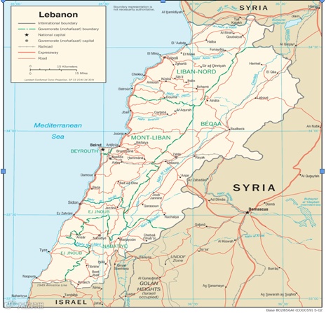 图5:黎巴嫩在中东地区的地理位置图