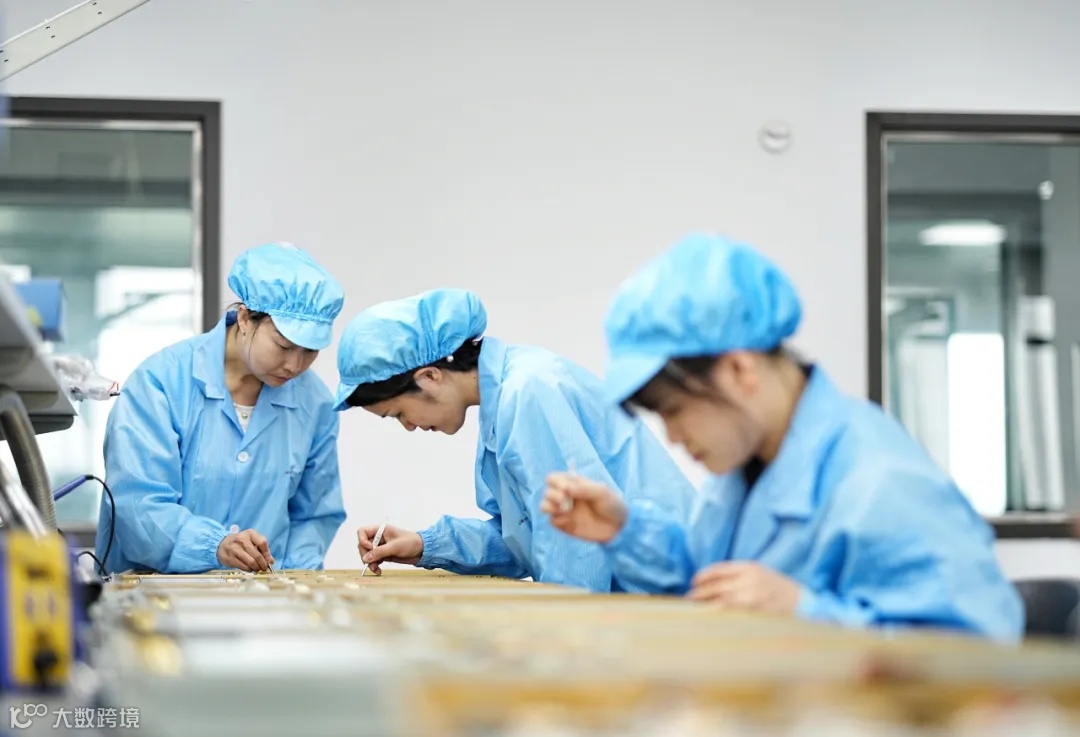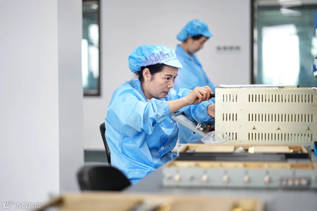 近年来,电装组迈步向现代化生产模式转型,在工艺、技能上不断创新,帮助公司多个重要型号实现核心组件功能。在金属背板上,0.2毫米的棱形角比芝麻还小,她们却以线枪为“针”,将直径0.4毫米的绞线精准缠绕;在被称为“微雕”的加工工序上,她们将不足发丝一半粗的导线,焊接在宽度一致的印制板线路上,不仅能精准把握细如流丝的用锡量,还能完美复刻印制板的金属纹路图案。