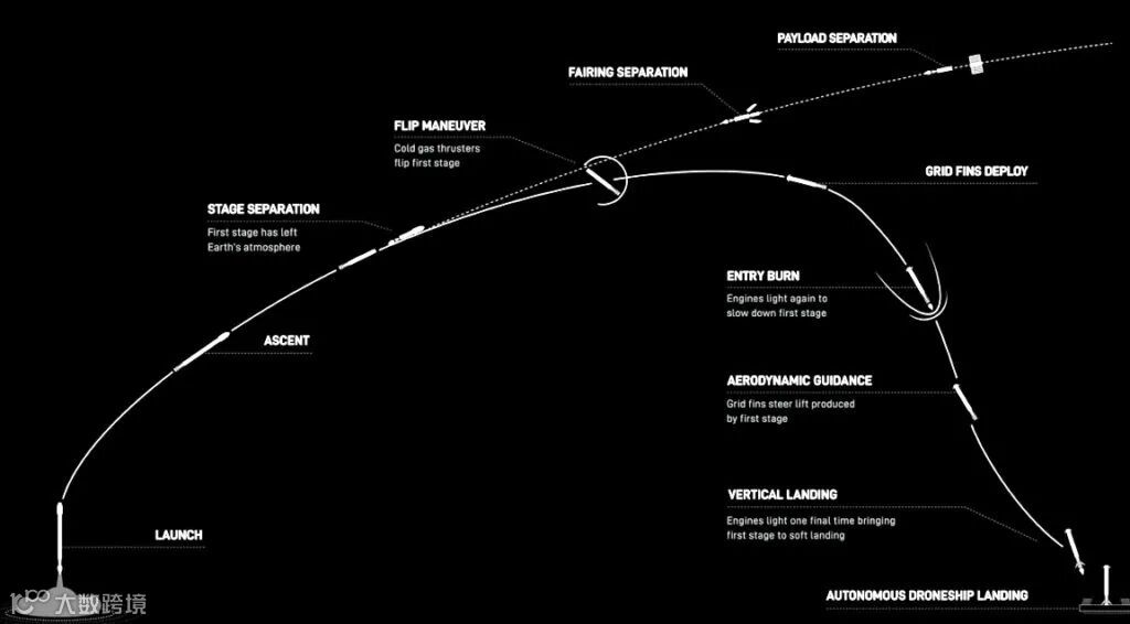 级分离后,猎鹰 9 号的第一级将返回地球并降落在驻扎在大西洋的无人船上。