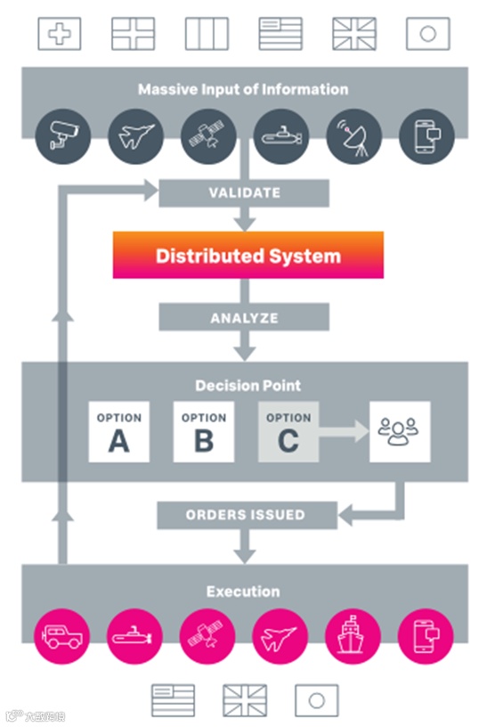 JADC2,或联合全域指挥和控制,是国防部高级官员正在使用的新兴术语,用于描述将正确的数据与所有作战人员联系起来,以实现最佳决策和结果。第一次,想象部署在舰船、飞机和坦克上的高度先进的传感器不断向总部反馈关键的实时信息的场景是现实的。然后,使用最先进的人工智能和机器学习(ML)工具,指挥官可以分析大量涌入的情报,并更快地做出更好的决策。这项技术已经使人类救灾援助(HAIDR)等领域受益,这通常涉及从不同的来源提取数据,以实时做出最佳决策。而且,随着云、连接和传感器技术的进步,将数据作为关键资产的使用已经超出了试验场。现在有可能在全球范围内优化运营。全面运行的JADC2环境将利用人工智能和机器学习来加快决策,以跨越空中、海洋、海底、陆地、太空和网络空间的机器速度-以任务要求的速度自动化流程和授权行动。