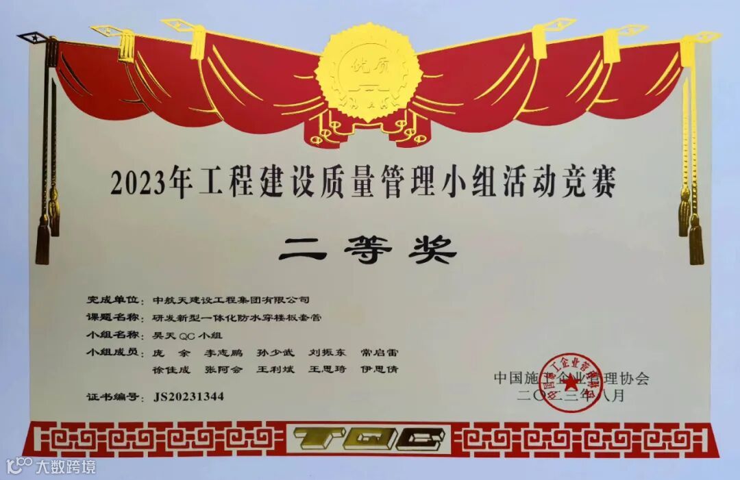 九公司昊天QC小组徐佳成携《研发新型一体化防水穿楼板套管》QC成果获得二等奖。