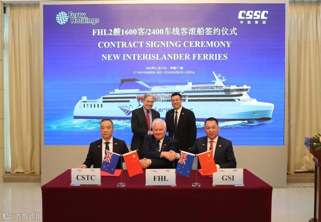 11月27日,中船广船国际联合中船贸易,与新西兰Ferry Holdings公司签署2艘新型客滚船建造合同。新西兰外交部兼铁道部部长温斯顿·彼得斯、驻华大使乔·文博(Jonathan Austin)、驻广州总领事张典,新西兰Ferry Holdings公司董事长克里斯·麦肯齐(Chris McKenzie),中船集团副总经理彭原璞,广船国际董事、总经理周旭辉等领导嘉宾出席签约仪式。
