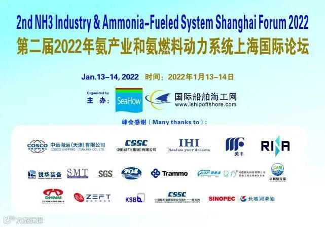 1)第四届2023年氨产业和氨燃料动力系统上海国际论坛将于2023年1月13-14日举办