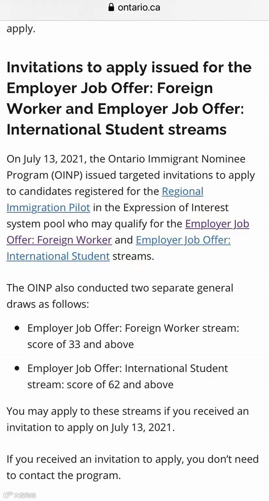 加拿大时间2021年7月13日,安省省提名办公室(OINP)向海外劳工、国际留学生等雇主担保类别共计1685人发放了省提名邀请。