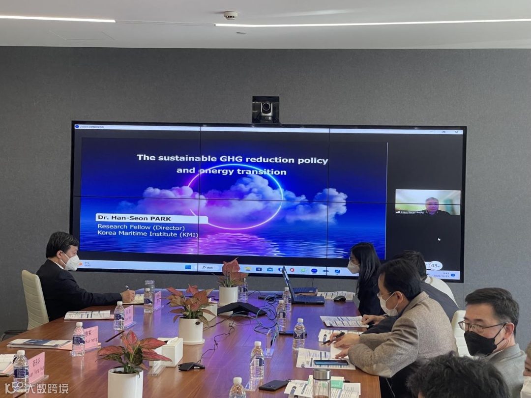学术交流部分,来自韓國海洋水産研究院(KMI)的朴韓善 博士、韩国造船海洋器材研究院 (KOMERI)的洪瑃範 團長分别作题为《可持续的温室气体减排政策和能源转型》《韩国亲环境船舶研究开发动向》的学术报告;中方华东师范大学国际航运物流研究院院长包起帆 教授、同济大学环境科学与工程学院王磊教授分别作题为《长江河口疏浚土资源化利用与生态基底塑造》《河口海域资源的绿色/低碳利用新途径--新型生态护岸材料的制备与应用》的学术报告。学术报告结束后,双方专家围绕议题进行了互动讨论和交流。