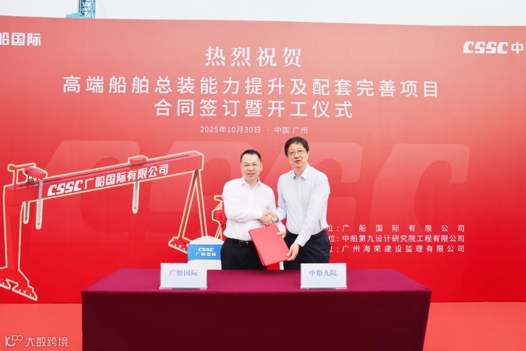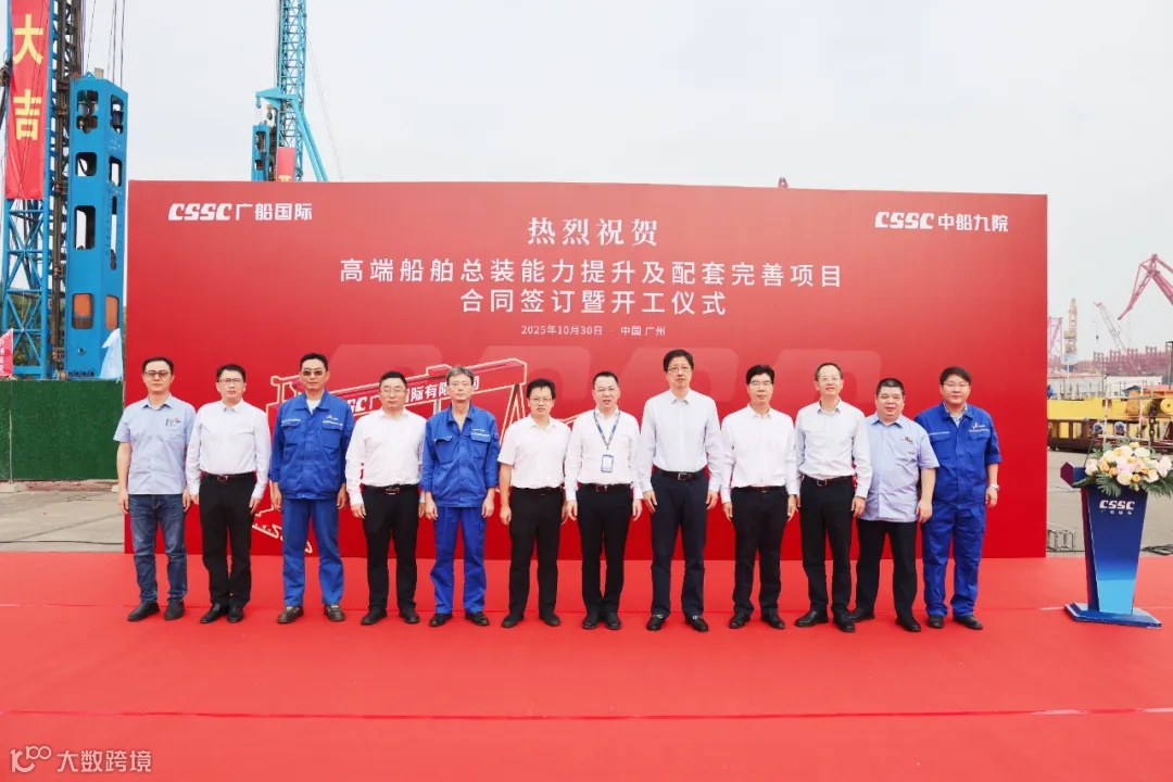 10月30日,中船广船国际与中船第九设计研究院工程有限公司签署高端船舶总装能力提升及配套完善项目合同并举行开工仪式。中船九院党委书记、董事长兼总经理孙伟军,广船国际党委副书记、董事、总经理周旭辉,副总经理金利潮、康友平等领导出席仪式。康友平主持仪式。