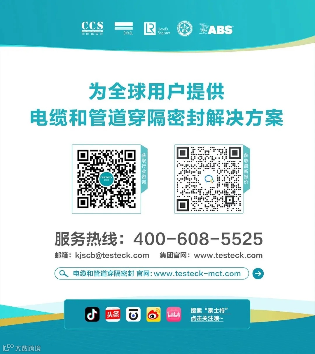 泰士特模块化穿隔密封系统获得MED认证的关键在于其技术创新与卓越性能。系统采用三元乙丙橡胶和316不锈钢等高性能材料,具备无毒、阻燃、低烟、耐腐蚀等特性。