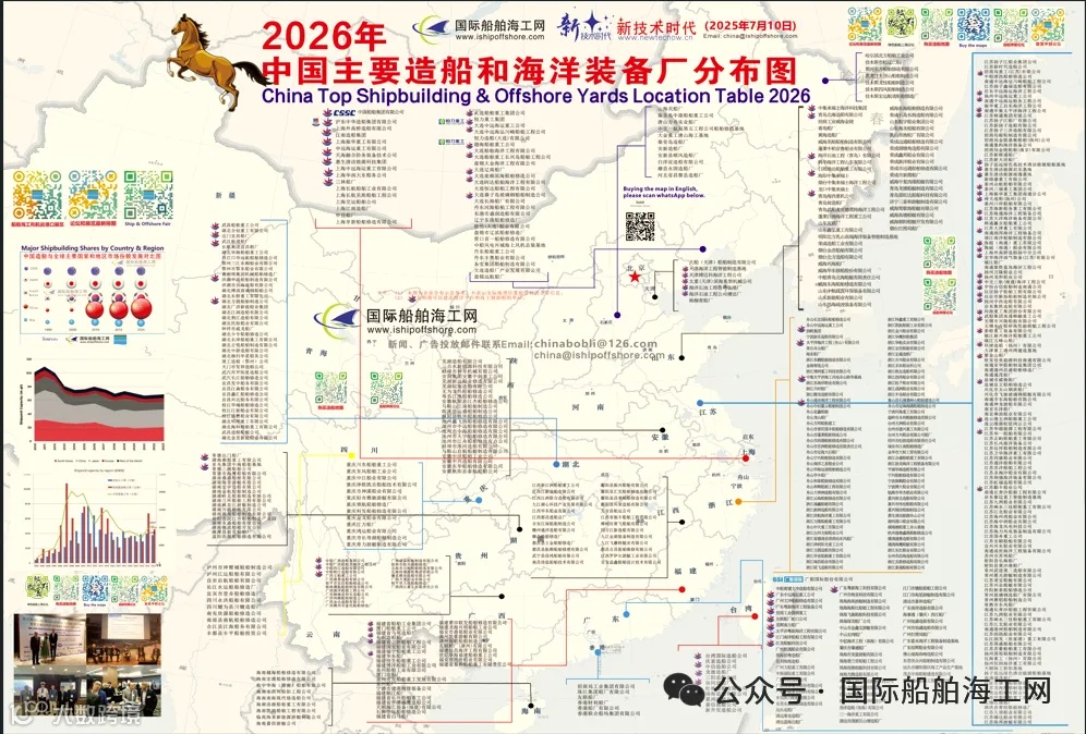 为迎接中华人民共和国成立76周年2025年国庆和中秋佳节,应多家著名船舶公司的购买需求,迄今最新更新版700家中国精锐船厂在列、防水特制的、特大的2026年中国造船厂和海洋装备厂分布图(简称造船厂地图)于2025年9月19日提前在上海成功印刷发布,并以导弹筒式特殊包装快递给用户并随同赠送免费广告的造船厂地图,有图有真相,如上和如下,该地图将不断动态地持续更新,祝大家国庆中秋双节快乐马到成功、图开得胜。同时免费赠送新版2026中国造船厂地图也开始编辑,将随后赠送,1千5百元人民币起就可在上面投放广告,咨询:china@ishipoffshore.com 或 chinabobli@126.com