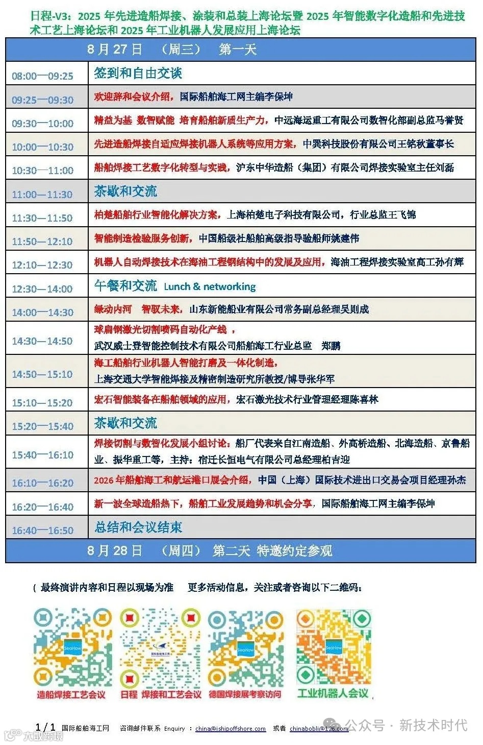 第四届2025年造船焊接切割和智能制造上海论坛暨2025年船舶海工产业智能制造和数字化应用上海大会和2025年第四届工业机器人发展应用上海论坛将于12月4日在上海举办,本届论坛大会将在《中国机器人工业年鉴》、中国(上海)国际技术进出口交易会(简称“上交会”,英文缩写“CSITF”)等单位指导支持下,由国际船舶海工网、新技术时代和低空天地平台联合承办,将进一步交流中外智能高效造船、管理创新、 技术创新、海洋装备先进制造、构建数字产业生态、智能制造、数字化、智能焊接、切割、智能总装等先进技术工艺应用、工艺变革、装备更新、计算机辅助技术、工业机器人、AI技术、ChatGPT、数字孪生、绿色低碳与数字化融合、大数据、云计算、网络安全、业务协同等的新发展和应用趋势,中外代表将纷纷汇聚上海交流,咨询:meetchinamkt@163.com或者 china@ishipoffshore.com