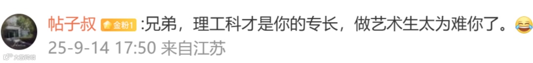 有网友评论道:理工科才是你的专长,做艺术生太为难你了。
