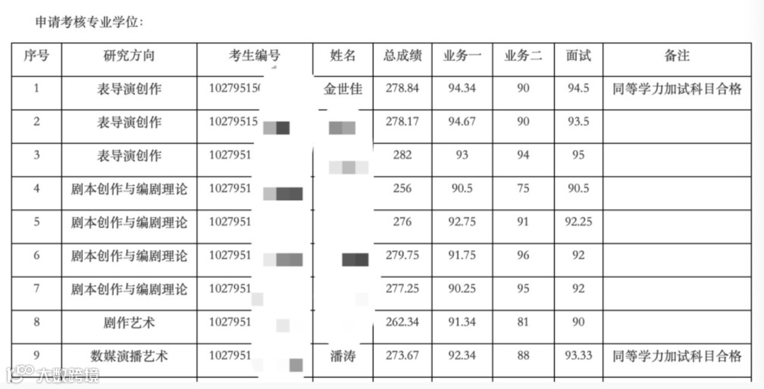 6月20日,上海戏剧学院发布了2025年上海戏剧学院博士研究生拟录取名单。在拟录取名单显示,申请考核专业学位中,潘涛研究方向为数媒演播艺术,业务一科目成绩为92.34分,业务二科目成绩为88分,面试成绩为93.33分,同等学力加试科目合格,总成绩为273.67分。