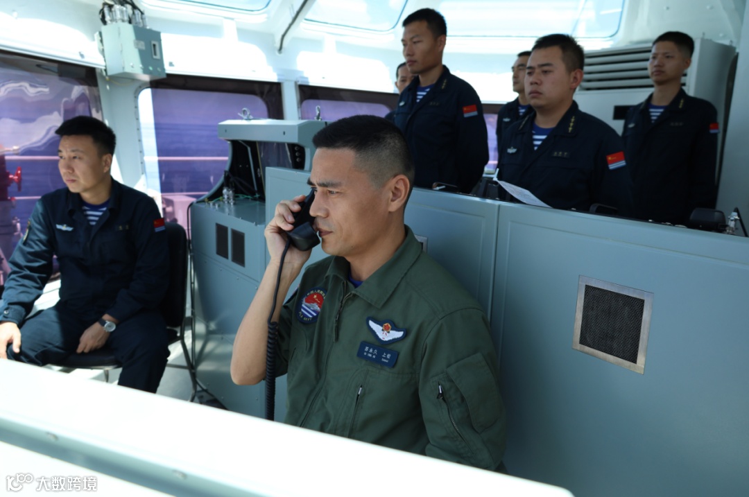 医院船瞭望更观察直升机飞行状态 (崔晓洋 摄)