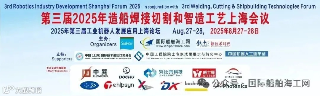 在国内外成功举办了系列专题会议论坛基础上,为进一步促进在当前造船热的大潮下船舶海工制造业转型和升级,第四届2025年造船焊接切割和智能制造上海论坛暨2025年船舶海工产业智能制造和数字化应用上海大会和2025年第四届工业机器人发展应用上海论坛将于12月4日在上海举办,本届论坛大会将在《中国机器人工业年鉴》、中国(上海)国际技术进出口交易会(简称“上交会”,英文缩写“CSITF”)等单位指导支持下,由国际船舶海工网、新技术时代和低空天地平台联合承办,将进一步交流中外智能高效造船、管理创新、 技术创新、海洋装备先进制造、构建数字产业生态、智能制造、数字化、智能焊接、切割、智能总装等先进技术工艺应用、工艺变革、装备更新、计算机辅助技术、工业机器人、AI技术、ChatGPT、数字孪生、绿色低碳与数字化融合、大数据、云计算、网络安全、业务协同等的新发展和应用趋势,中外代表将纷纷汇聚上海交流,咨询:meetchinamkt@163.com或者 china@ishipoffshore.com